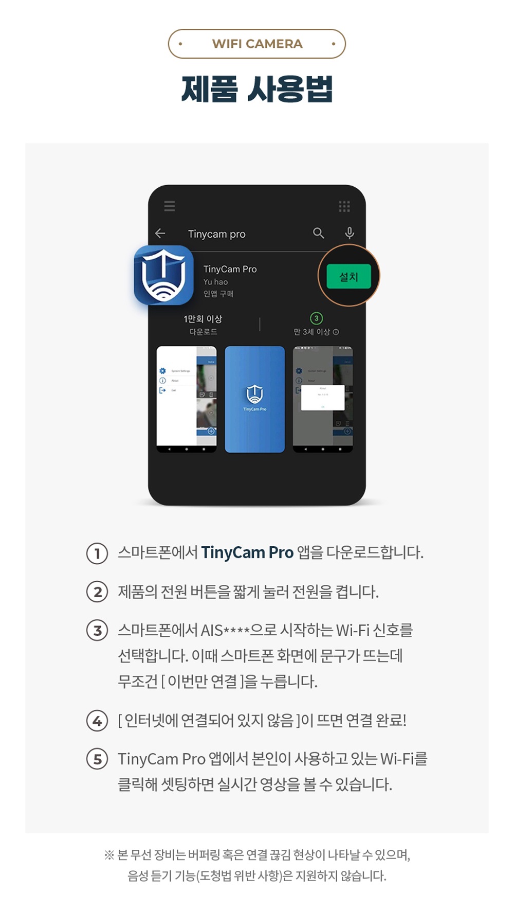 먼저 전용 앱을 스마트폰에 설치한 후 제공된 설명서를 따라 단계별로 설정하면 됩니다.