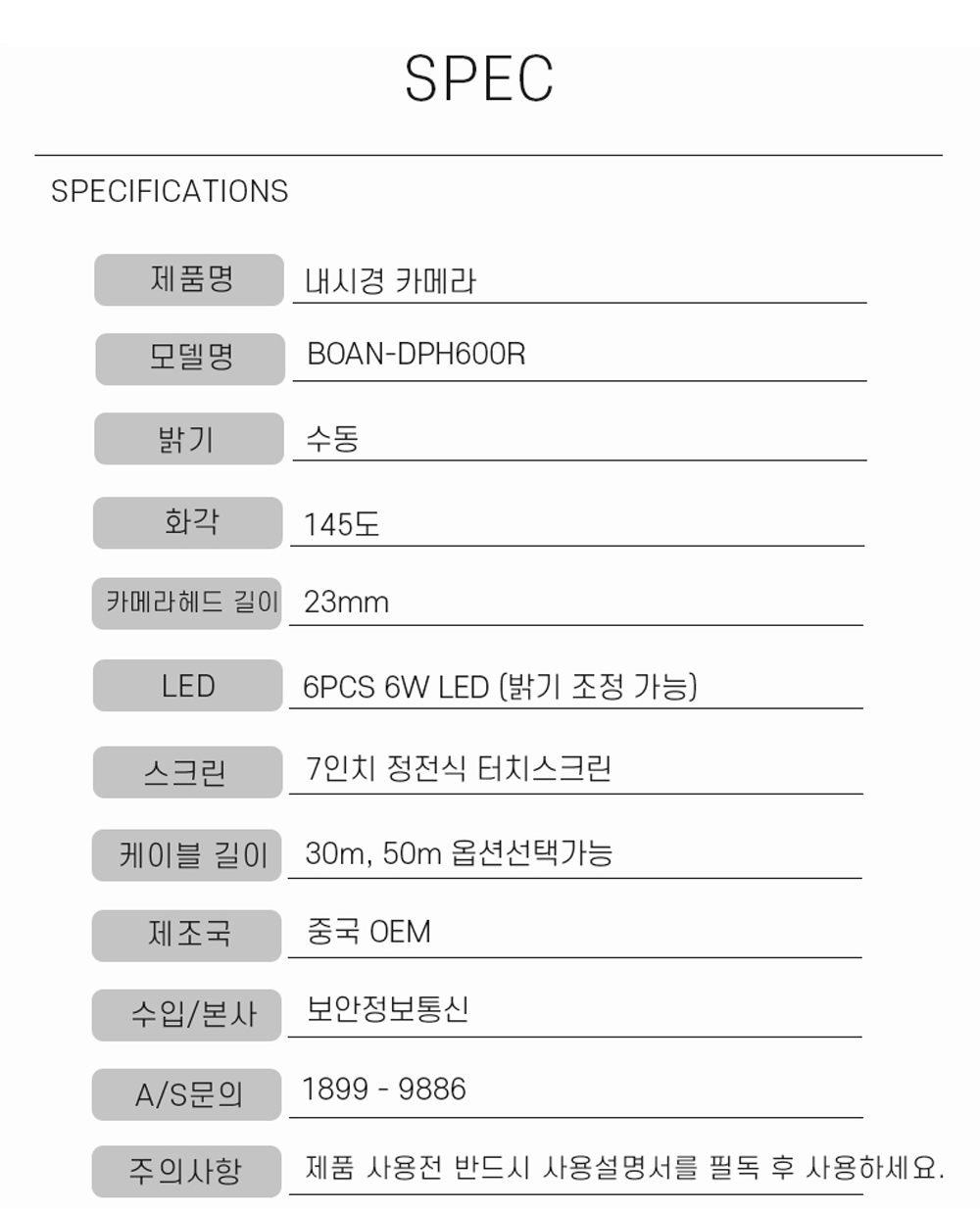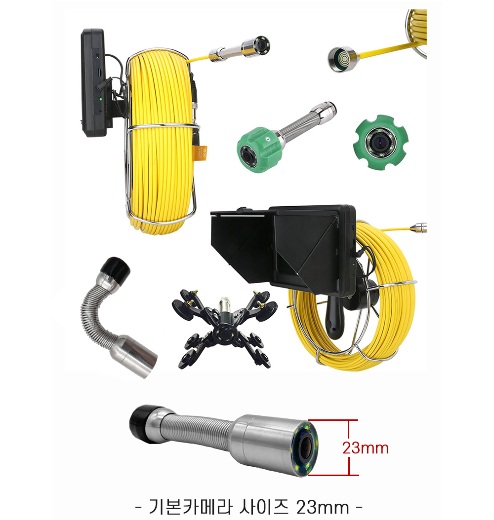이 제품은 23mm 소형 카메라로 제작되어 협소한 공간에서도 원활한 탐사가 가능합니다.