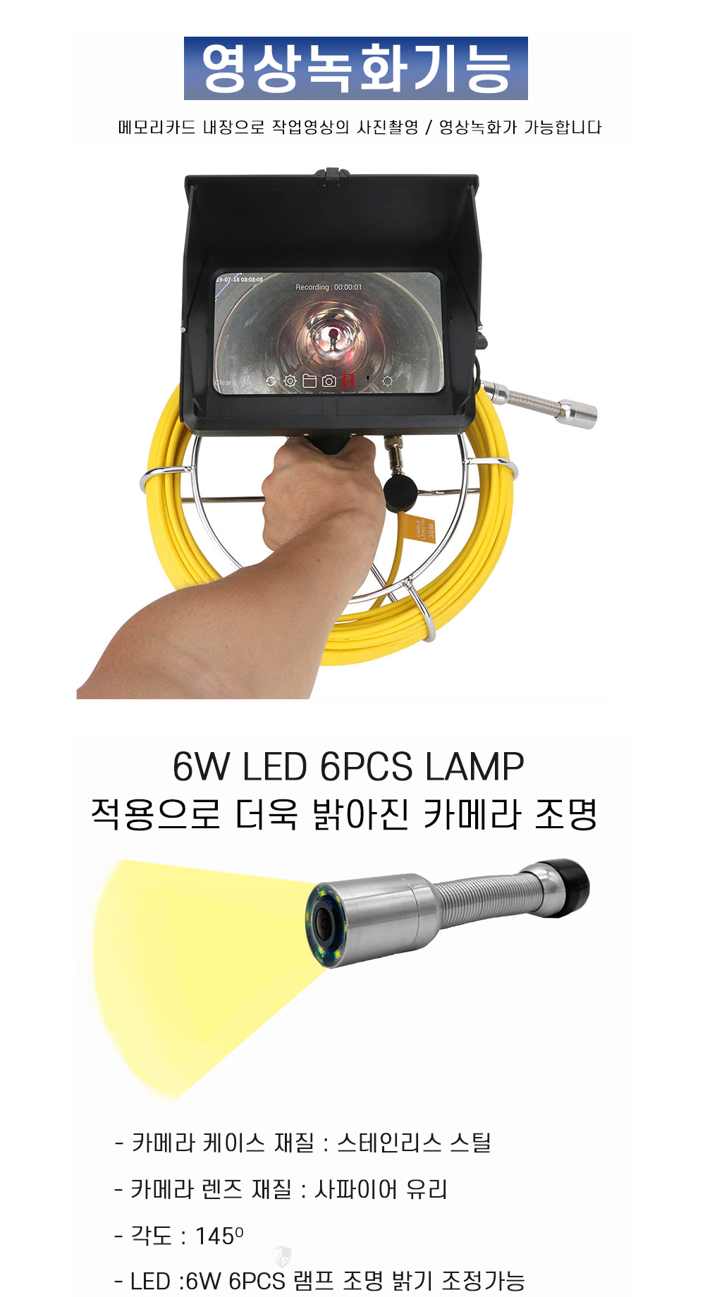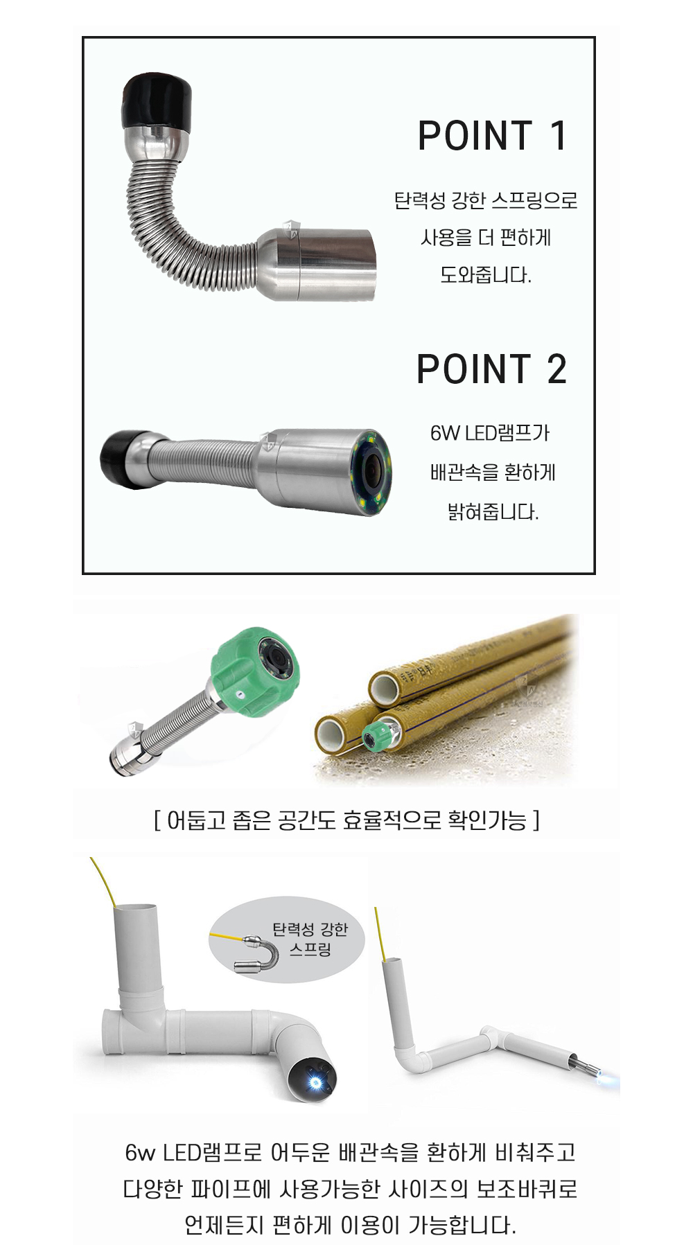 배관 내부나 하수관 내부는 이물질이 많고 거친 환경이기 때문에 카메라의 내구성이 매우 중요합니다.