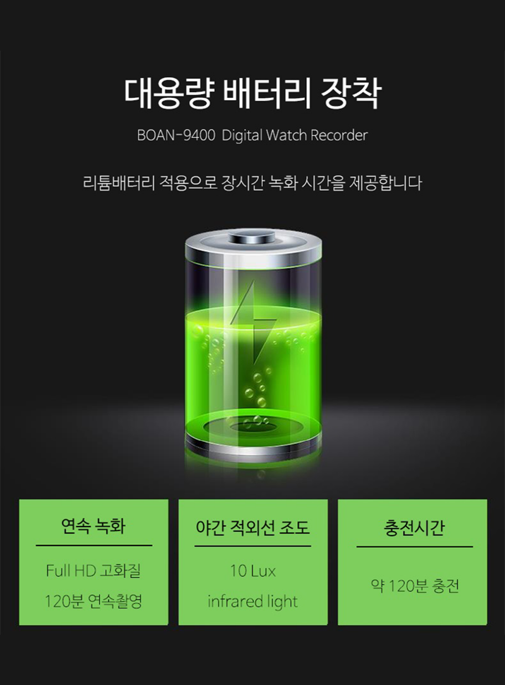 · 120분 연속 녹화 : 장시간 촬영 가능