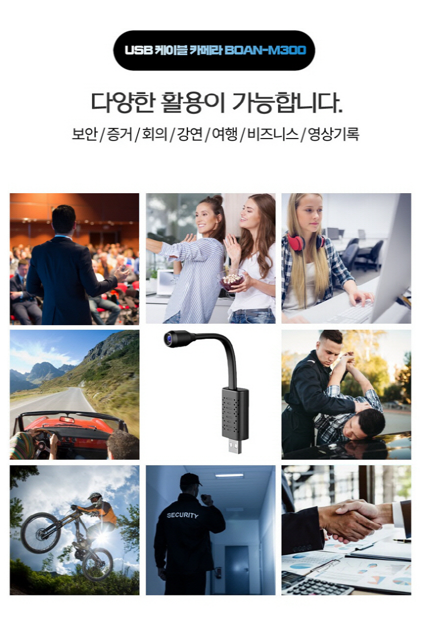 USB 스네이크 초소형카메라는 고화질 촬영, 장시간 연속 촬영, 동작 감지 등 다양한 기능을 통해 일상에서 필요한 모든 보안 솔루션을 제공합니다. 가정, 사무실, 야외 등 어디에서나 안전을 지키고 중요한 순간을 기록할 수 있는 이 제품은 여러분의 완벽한 선택이 될 것입니다.