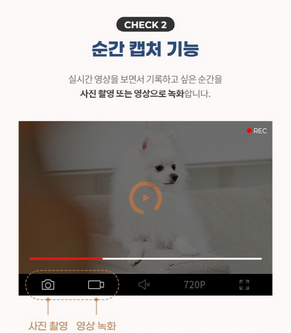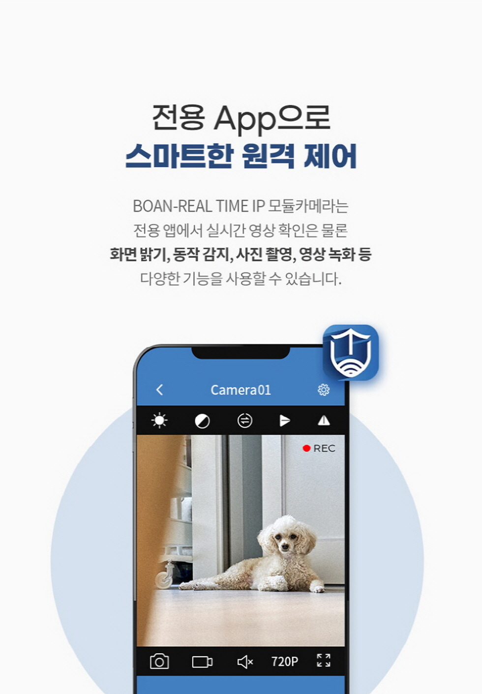 화면 밝기 조정, 동작 감지 설정, 영상 녹화 등 다양한 기능을 스마트폰으로 제어할 수 있어 편리합니다.