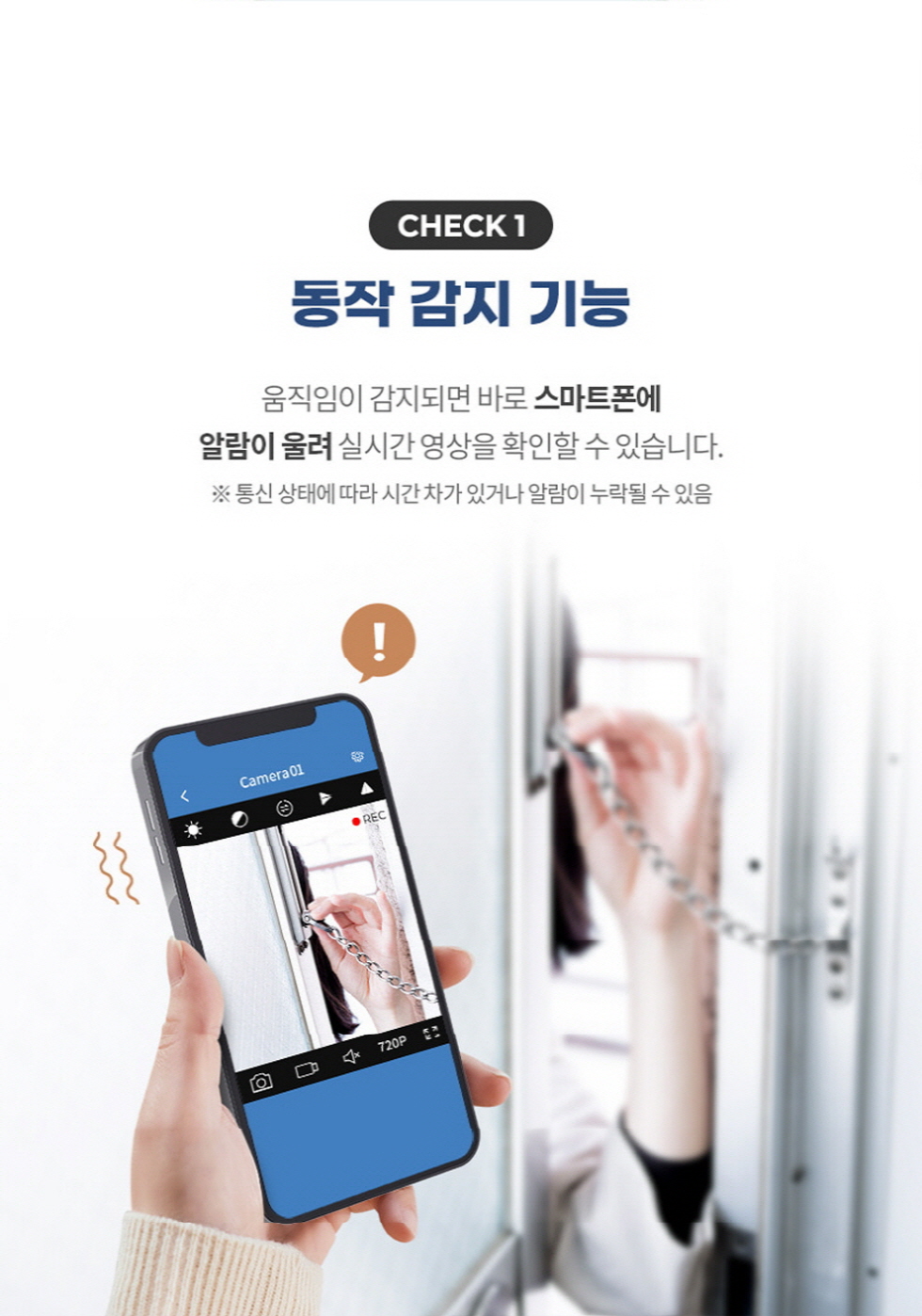 초소형무선카메라는 동작 감지 기능을 통해 움직임을 실시간으로 감지하고 스마트폰으로 알림을 전송합니다.
