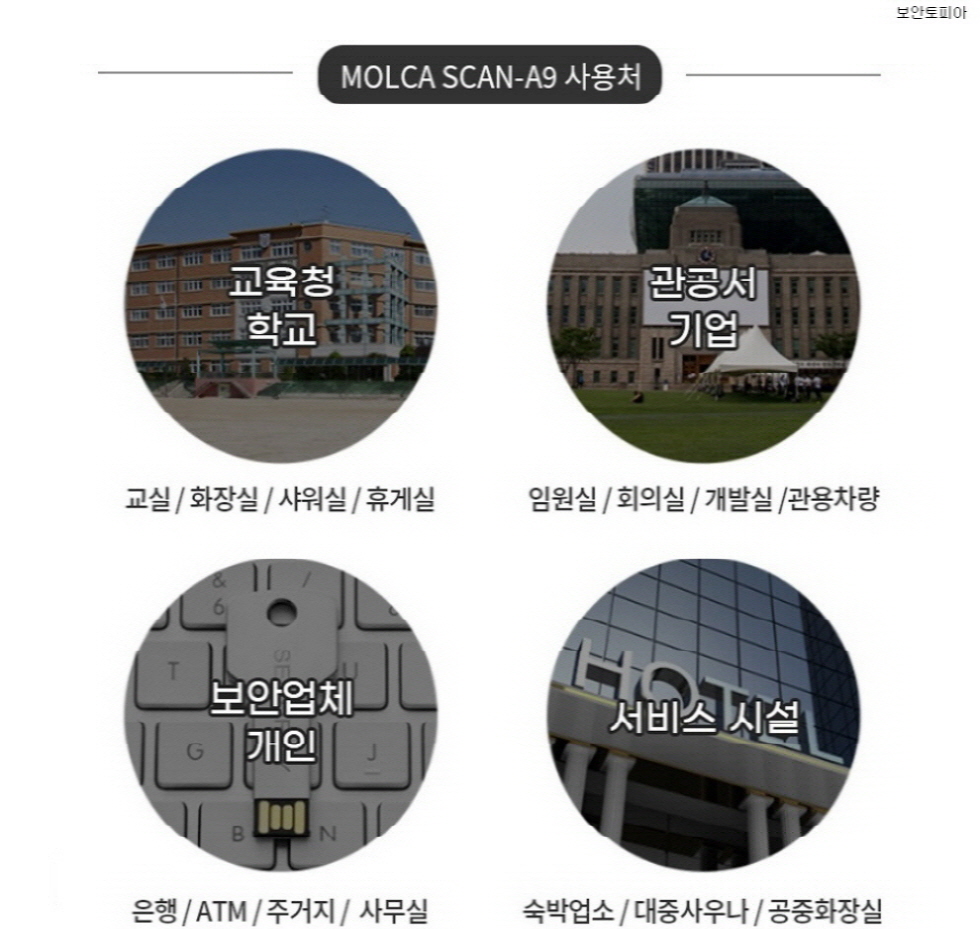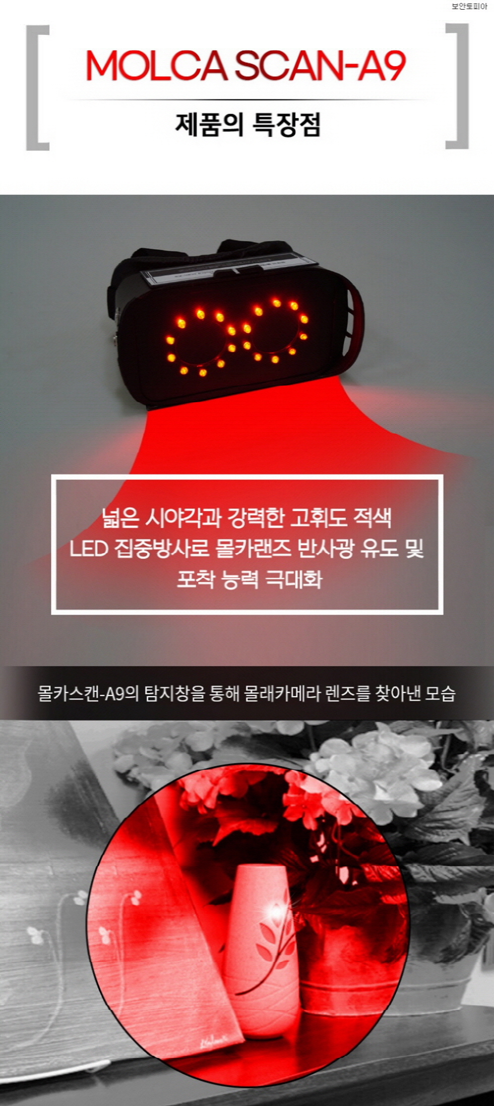 Molca Scan A9 몰래카메라탐지기 유/무선 초소형 몰카 광역 탐지기 | 호신캠-초소형카메라ㅣ초소형캠코더ㅣCCTV 전문점 관공서 대량납품장비 - 유/무선 몰래카멜라탐지기, 카메라 렌즈와 실시간 카