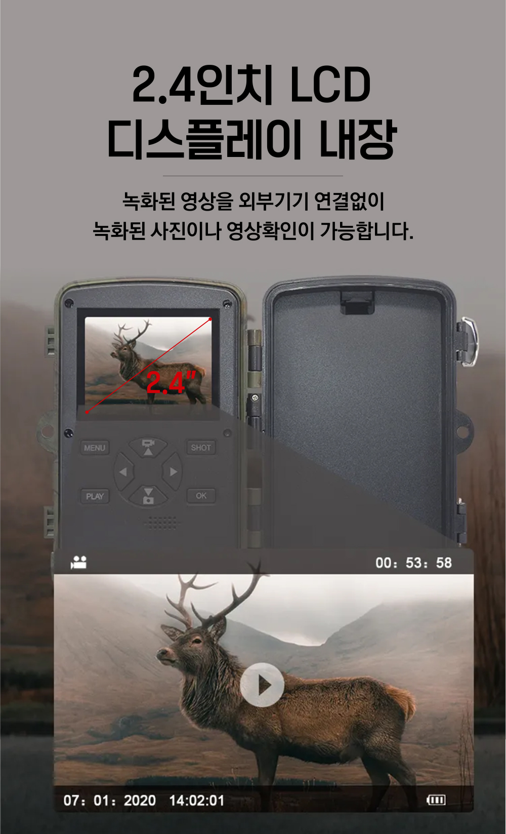 2.4인치 LCD 디스플레이로 실시간 영상 확인 가능