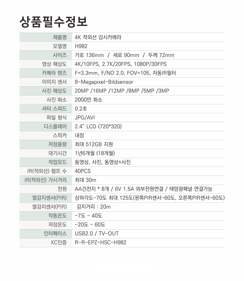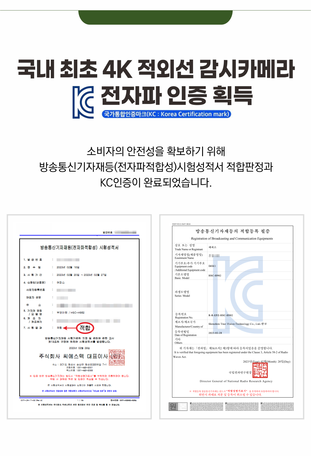 - 4K 초고화질 영상 촬영 : 선명한 감시 영상 확보