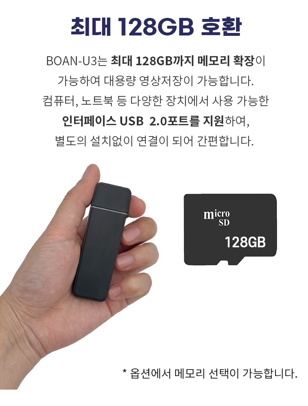 128GB 대용량 저장 지원으로 장시간 녹화 가능