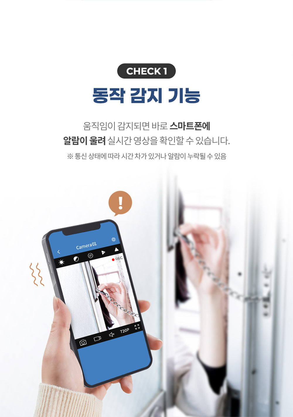 - 동작 감지 알림 : 움직임이 감지되면 스마트폰에 알림 전송.