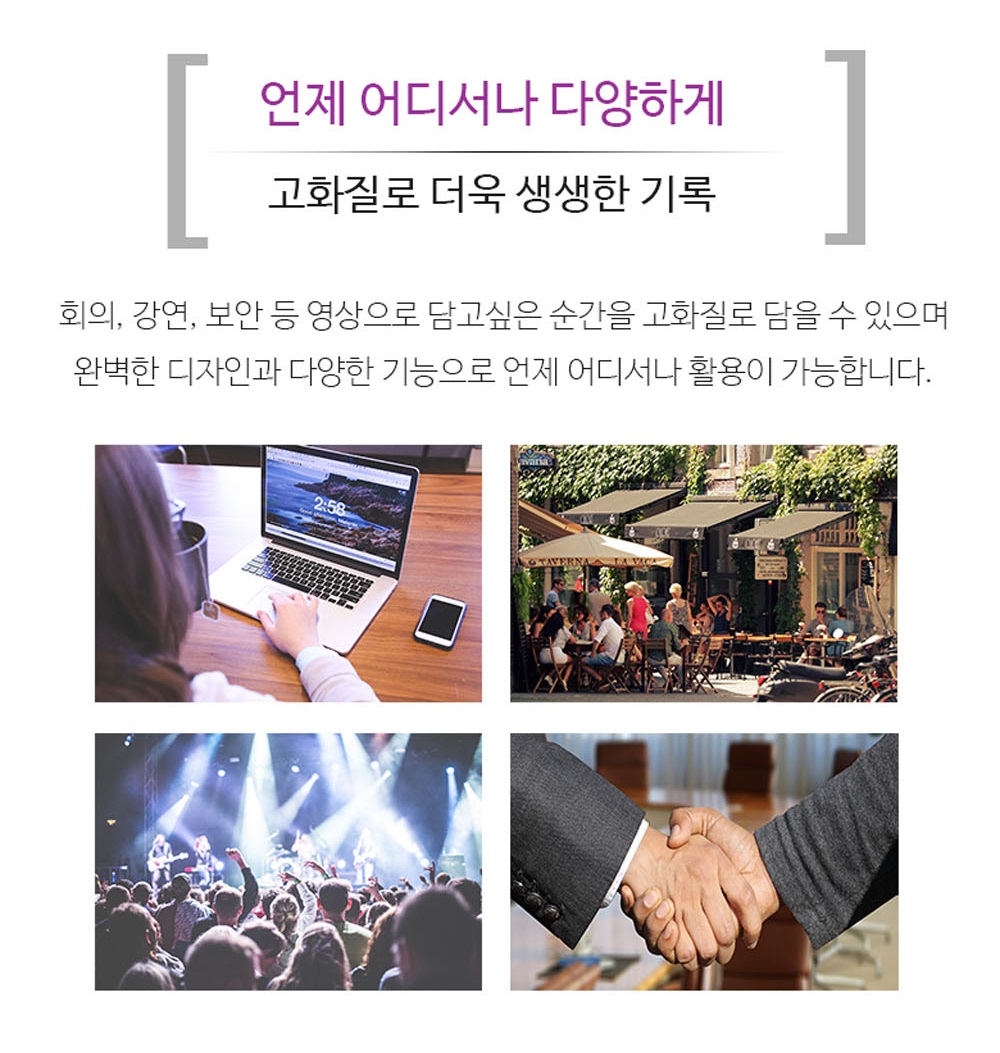 32GB 메모리카드와 호환되어 충분한 녹화 시간이 확보돼요.