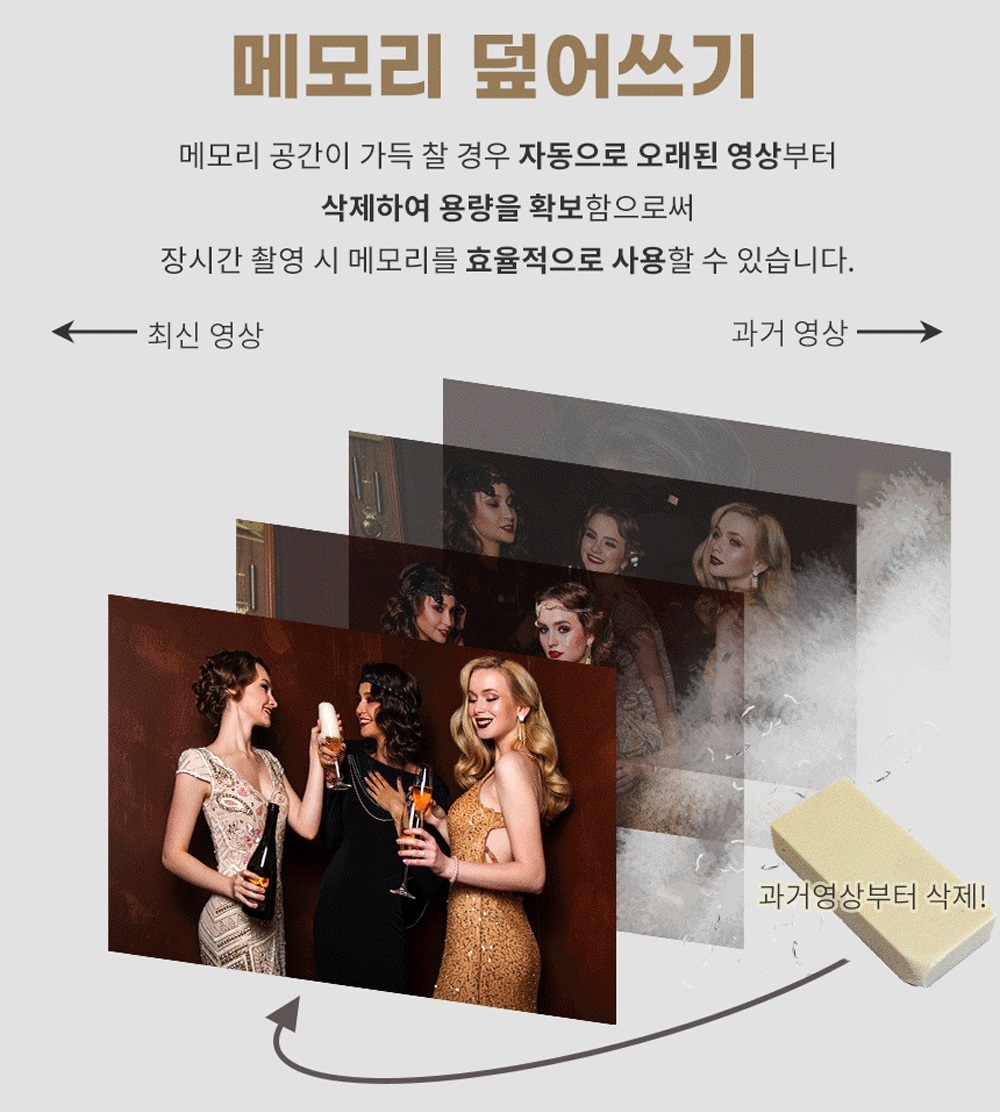 메모리 덮어쓰기 기능은 오래된 영상을 자동 삭제해 항상 최신 영상을 유지합니다.