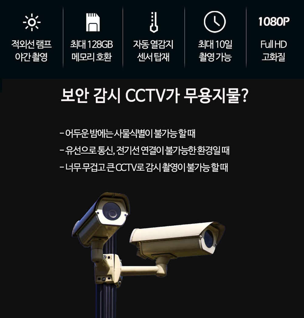 특수카메라 열감지 감시카메라 최대 10일간 연속촬영