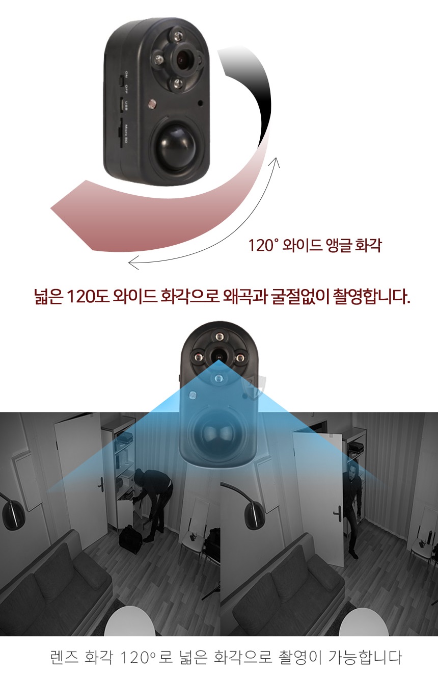 BOAN-3310 광각촬영보안카메라는 120° 넓은 각도로 촬영해 사각지대를 최소화합니다.