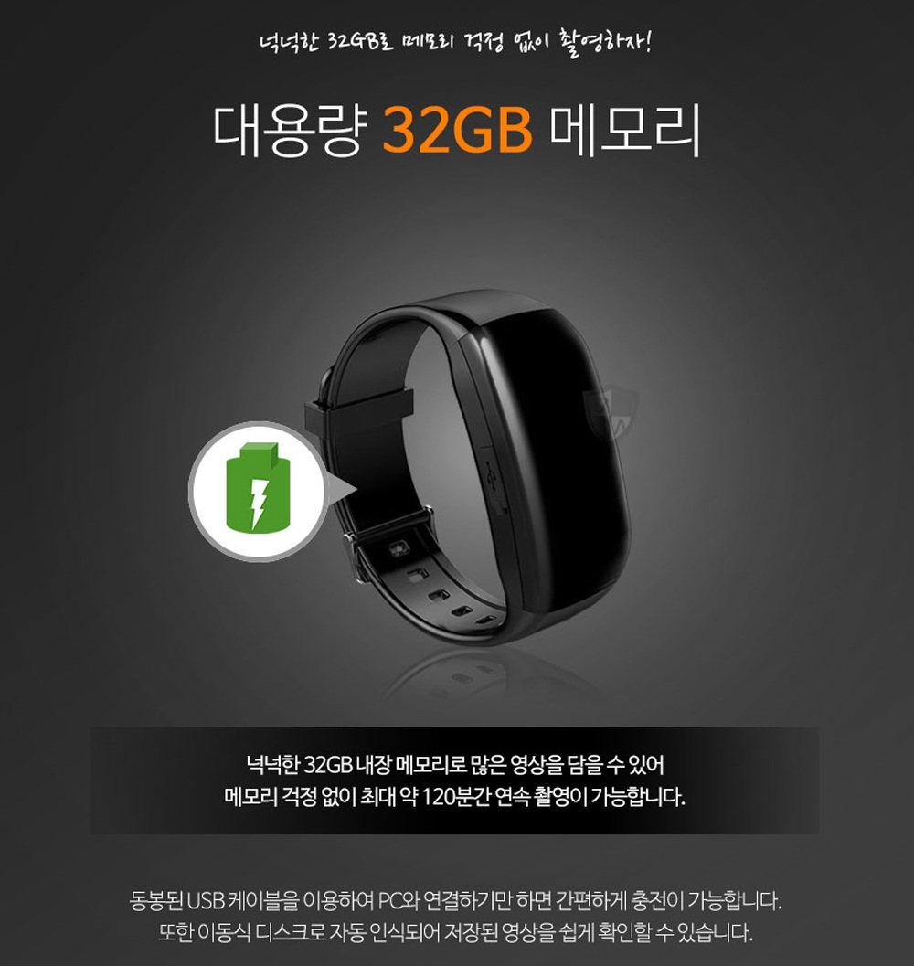 스마트워치휴대용카메라는 32GB 메모리를 탑재해 대용량 자료도 문제없이 저장합니다.