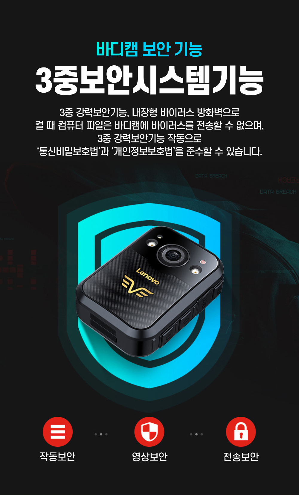 이 카메라는 3단계 영상 데이터 보안기능으로 보안성이 보다 높아졌습니다.