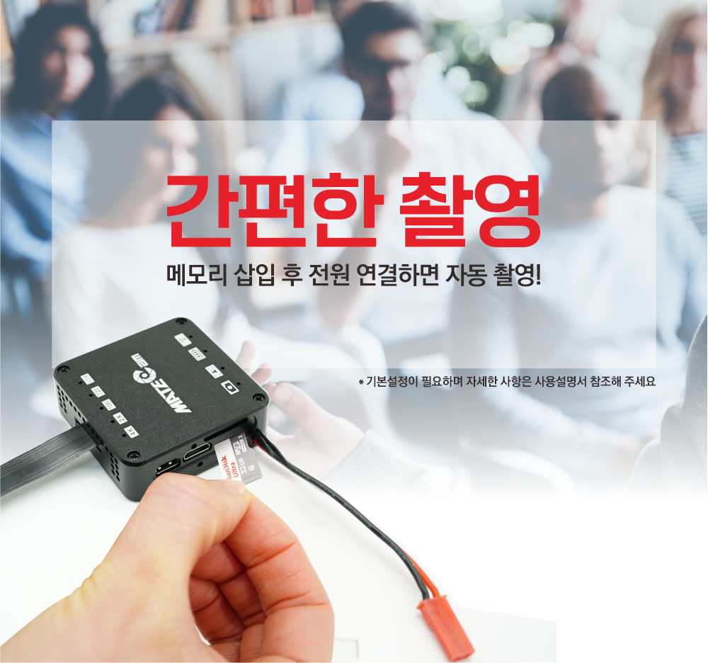 이 소형캠은 간단한 조작으로 영상을 자동으로 녹화, 저장합니다.